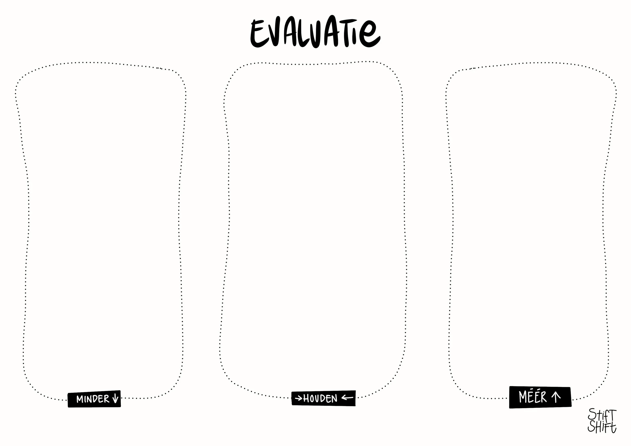 Hieronder vind je een voorbeeld van een visueel template voor een korte evaluatie van bijvoorbeeld een project.