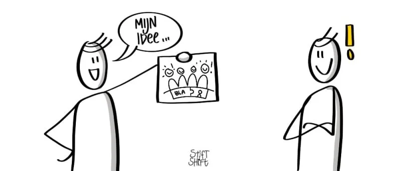 Een lampenbolletje bij mijn idee tekenen? Dat is té nietszeggend.