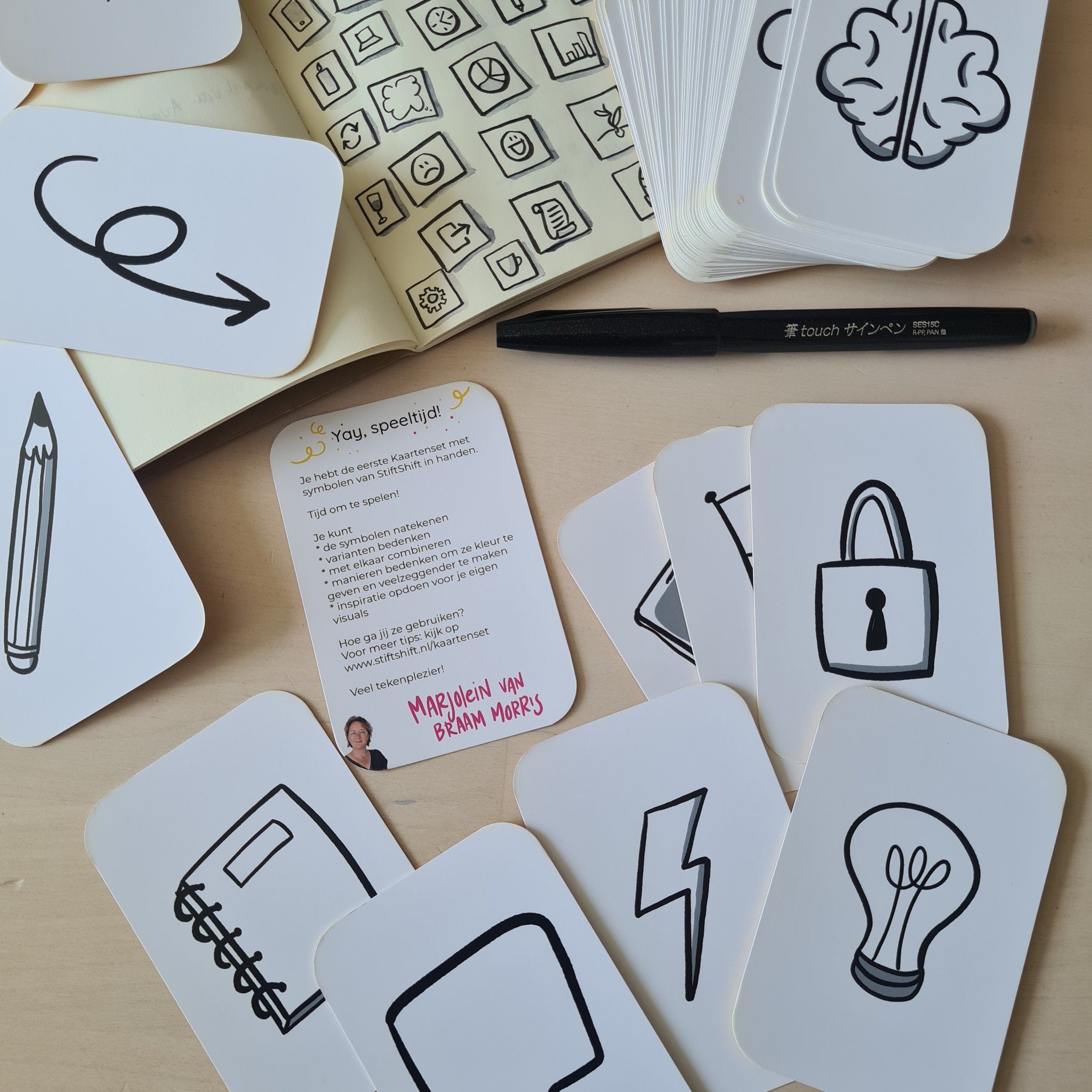 Deze kaartenset met 51 symbolen helpt je zakelijke tekenvaardigheden te oefenen en inspiratie op te doen. Bovendien kun je ze ook á la associatiekaarten gebruiken in je teamsessies.